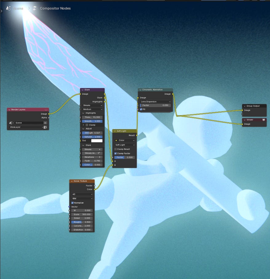 I really love compositing in Blender so I just moved on to that. I added glare and noise to make those elements stand out even more. Then I added a very small amount of chromatic aberration!